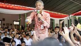 Governor Ganjar Calls for Online Early Warning System Central Java Governor, Ganjar Pranowo is seen talking with Elementary School students at Surakarta, Central Java (8/6). Bram Selo Agung/Tempo.